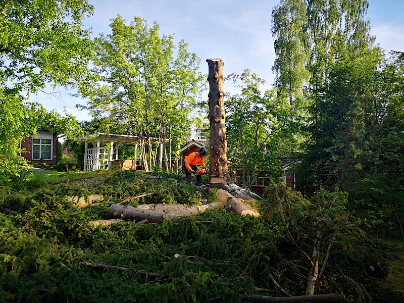 Palvelu laaditaan aina asiakkaan toiveiden mukaan. Voimme käydä vain kaatamassa puun ja antaa asiakkaan jatkaa siitä eteenpäin tai voimme hoitaa työn alusta loppuun asti. Tähän voi sisältyä esimerkiksi puiden kaataminen, oksien karsiminen, rungon paloittelu polttopuumittaan ja pihan siivoaminen. Myös risujen ja rungon poisvienti onnistuu yhteistyökumppaneidemme avulla.